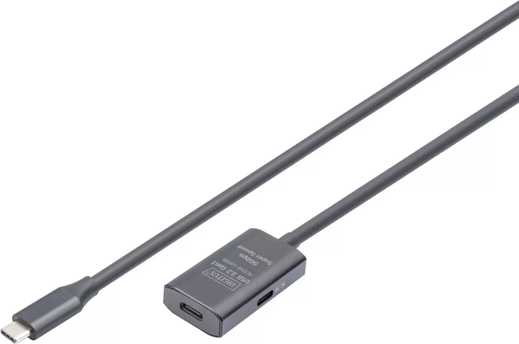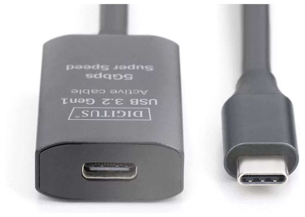 Műszaki adatok: AWG: 28/28/24 · Belső vezető anyaga: Vörösréz · Csatlakozó típus: USB, USB-C®, USB 3.0 · Csatlakozók: USB-C®, USB-C® alj, USB-C® dugó · Dugó kivitel: egyenes, dugaszolható · Gyártói szín: Fekete · Jelfolyam: bidirekcionális (A↔B) · Kábel forma: Kerek · Kábel kivitel: Hosszabbítókábel · Kábelhossz: 5.00 m · Max. átviteli sebesség: 5 GBit/s · Specifikáció: USB 3.2 Gen1, USB 3.2 Gen1, USB 3.0 · Vezeték jellemzők: aktív, jelerősítéssel, Kétoldalt használható dugó, Kettős árnyékolás, Hajlékony, Árnyékolt, törésgátlóval, USB-vel, Hosszabbító kábellel · Árnyékolás: Teljesen árnyékolt · Összekapcsolási mód: USB-C®-ről USB-C®-re