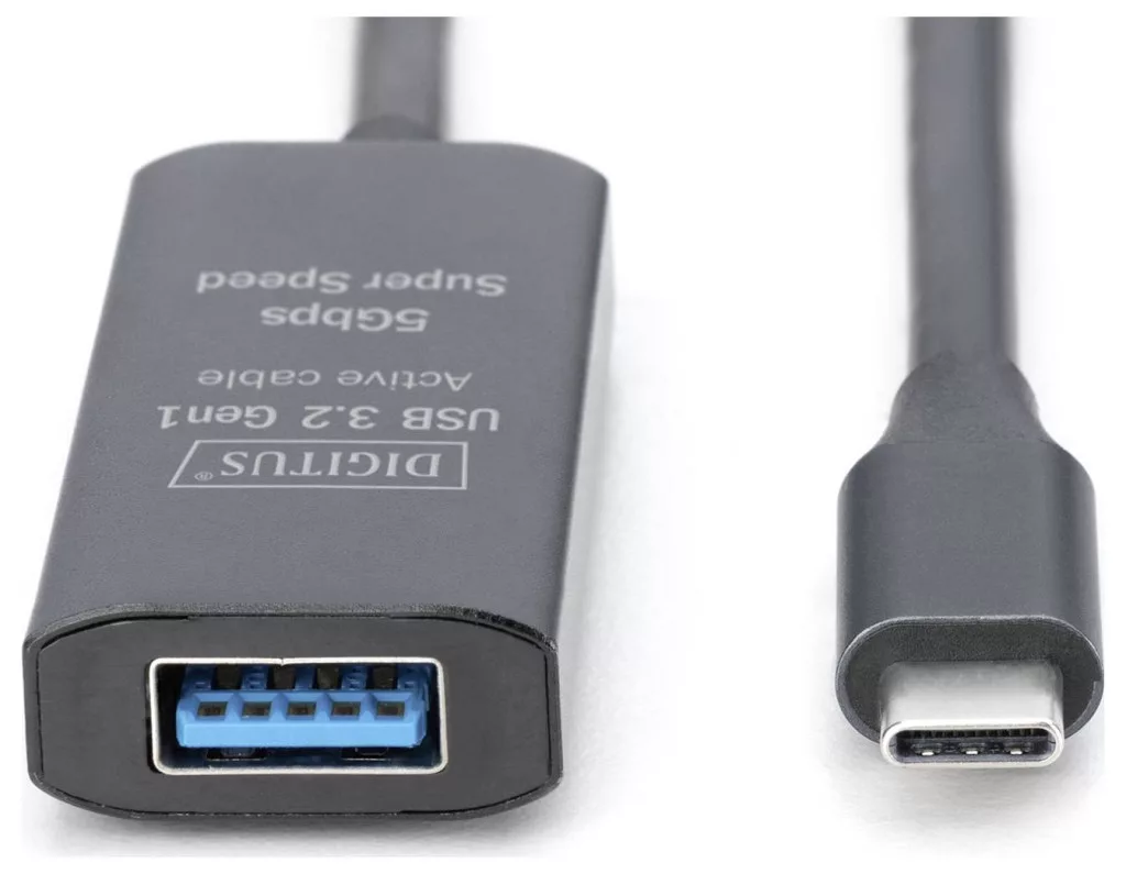 Műszaki adatok: AWG: 28/28/24 · Belső vezető anyaga: Vörösréz · Csatlakozó típus: USB, USB-C®, USB 3.0 · Csatlakozók: USB-C®, USB-C® dugó, USB-A alj · Dugó kivitel: egyenes, dugaszolható · Gyártói szín: Fekete · Jelfolyam: bidirekcionális (A↔B) · Kábel forma: Kerek · Kábel kivitel: Hosszabbítókábel · Kábelhossz: 5.00 m · Max. átviteli sebesség: 5 GBit/s · Specifikáció: USB 3.2 Gen1, USB 3.2 Gen1, USB 3.0 · Vezeték jellemzők: aktív, jelerősítéssel, Kétoldalt használható dugó, Kettős árnyékolás, Hajlékony, Árnyékolt, törésgátlóval, USB-vel, Hosszabbító kábellel · Árnyékolás: Teljesen árnyékolt · Összekapcsolási mód: USB-C®-ről USB-A-ra