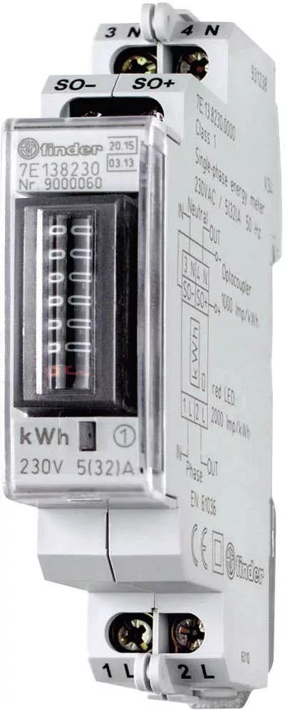 1 fázisú váltakozóáramú fogyasztásmérő, 32 A MID