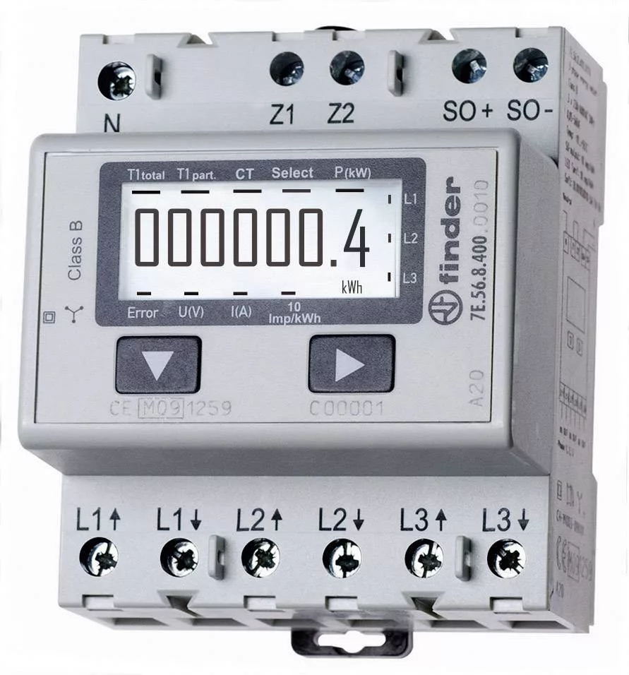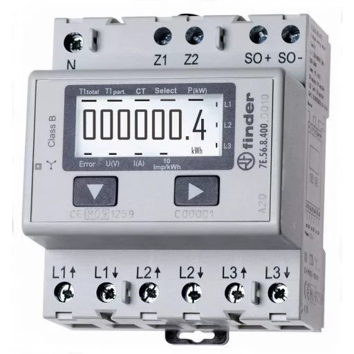 Digitális hatásos energia mérő indirekt csatlakozáshoz áramátalakítón át. Az átalakítási tényező 14 fokozatban állítható. A készülék megfelel az EN 62053-21 és EN 50470-3-nak, és engedélyezve van energiaköltség számlálásra az európai MID eng. szerint.