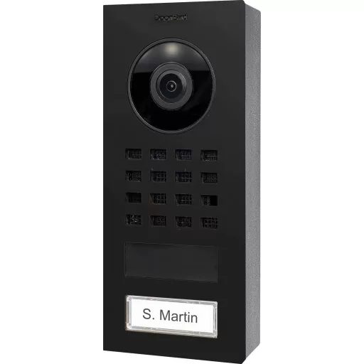 DoorBird IP videós kapuállomás D1101V felületre szerelhető, grafitfekete, szatén felülettel, felületre szerelhető házzal