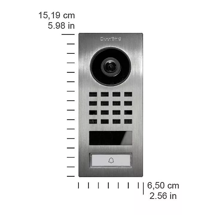 DoorBird IP videó ajtóállomás D1101V felületre szerelt, rozsdamentes acél V4A (sóvíz és rozsdaálló), szálcsiszolt, 1 hívógomb, felületre szerelt házzal