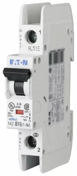 Műszaki adatok: Kikapcsolás: 15 kA · Kioldási karakterisztika: C · Névleges feszültség: 240 V/AC · Névleges áram: 16 A · Pólusszám: 1 · További műszaki adatok: Csatlakoztatható vezető keresztmetszete, egyvezetékes: 1 - 25 mm² Csatlakoztatható vezető keresztmetszete, sodrott: 1 - 25 mm² Biztosított pólusok száma: 1 Névleges szigetelési feszültség Ui: 440 V Szélesség modulokban: 1 Telepítési mélység: 70,5 mm Energiakorlátozási osztály: 3 Frekvencia: 50 - 60 Hz Védelmi osztály (IP): IP20 Túlfeszültség kategória: 3 Környezeti hőmérséklet üzem közben: -25 ° C - +75 ° C Szennyezés mértéke: 2 további eszköz lehetséges: Igen