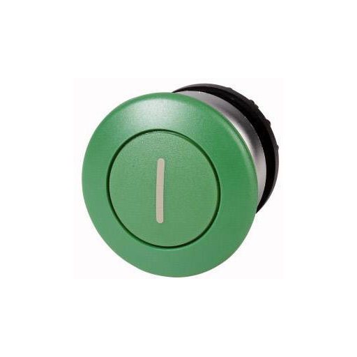 Műszaki adatok: Előlap vastagság: 6 mm · Felirat/motívum: I · Funkciók (kapcsoló/nyomógomb): Nyomó · Gomb átmérő: 36.5 mm · Gyártói szín: Zöld · Hőmérséklet (max.): +70 °C · Hőmérséklet (min.): -25 °C · Kapcsoló/nyomógomb jellemzők: kerek, lapos · Méret, hossz: 42.6 mm · Világítás típus: Nincs · Védelmi típus: IP67