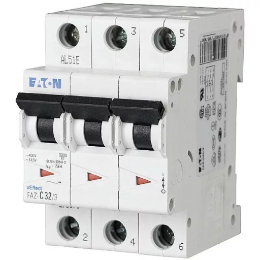 Műszaki adatok: Kikapcsolás: 15 kA · Kioldási karakterisztika: C · Névleges feszültség: 400 V/AC · Névleges áram: 16 A · Pólusszám: 3 · További műszaki adatok: Csatlakoztatható vezető keresztmetszete, egyvezetékes: 1 - 25 mm² Csatlakoztatható vezető keresztmetszete, sodrott: 1 - 25 mm² Védett pólusok száma: 3 Névleges szigetelési feszültség Ui: 440 V Szélesség modulokban: 3 Telepítési mélység: 70,5 mm Energiakorlátozási osztály: 3 Frekvencia: 50 - 60 Hz Védelmi osztály (IP): IP20 Túlfeszültség kategória: 3 Környezeti hőmérséklet üzem közben: -25 ° C - +75 ° C Szennyezés mértéke: 2 további eszköz lehetséges: Igen