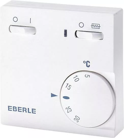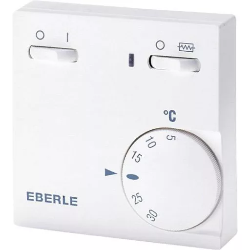 Helyiségszabályozó falra szereléshez. Alkalmas éjszakai tárolás, meleg levegő fűtés stb. Kapcsolja be / ki és kapcsolja be a kiegészítő fűtést, valamint az ellenőrző lámpát és a kiegészítő fűtést. Bimetál technológia hővisszacsatolással és nagy pontossággal. A beállítási gomb tartományának korlátozása a fűtési költségek fékezéseként. Felületre szerelhető vagy közvetlenül egy süllyesztetten elhelyezett dobozra függőleges rögzítő furatokkal, vagy beépíthető DIN sínre.