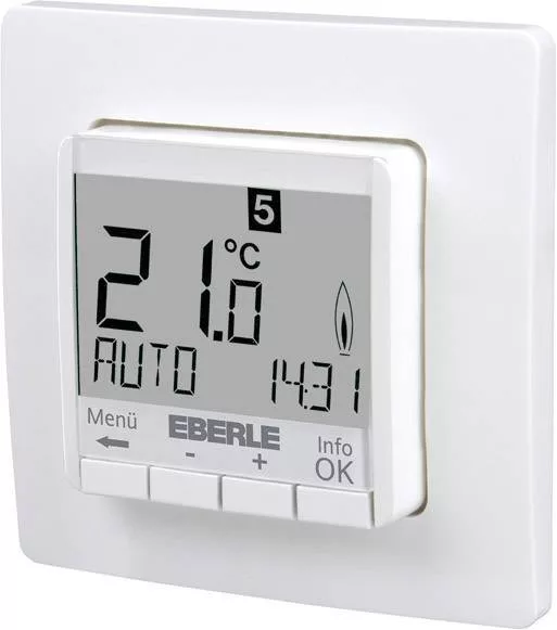 Az süllyesztett órás termosztát alkalmas központi, melegvizes padlófűtés, meleg levegős fűtés stb. Vezérlésére. Nagyon nagy kijelző, a fehér háttérvilágítás ki van kapcsolva, egy gomb megnyomása után röviden bekapcsol Egysoros szöveges kijelző az önmagyarázó működéshez Automatikus nyári-/téli időátállás. Előre beállított és testreszabható életmódprogramok. Engedély nélküli biztonság. Optimális indítás (a hőmérsékletet a beállított időpontban érjük el). Max. 9 kapcsolási idő naponta. Rövid időtartam (buli) a hőmérséklet óránkénti változtatásához. Fagyvédelem funkció. A hőmérséklet-beállítási tartomány korlátozható. Szelep védelem Ellenőrzési módszer PWM vagy 2 pontos. Fűtés / hűtés átkapcsolás, a szelepekhez való alkalmazkodás általában nyitva van. Energiafogyasztás kijelző (bekapcsolás x költségek). Telepítés 55 süllyesztett dobozban.