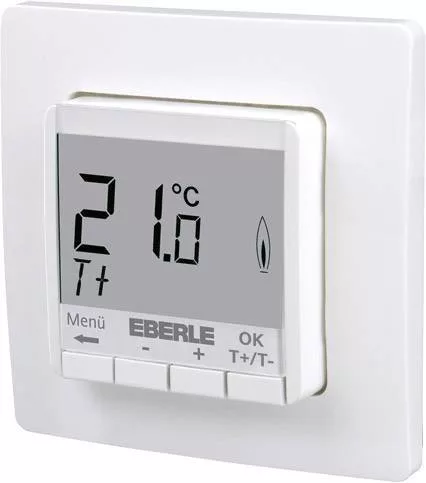Az süllyesztett termosztát alkalmas központi, melegvizes padlófűtés, meleg levegős fűtés stb. Vezérlésére. Nagyon nagy kijelző, a fehér háttérvilágítás ki van kapcsolva, egy gomb megnyomása után röviden bekapcsol Egysoros szöveges kijelző az önmagyarázó működéshez Egyszerű átkapcsolás 2 hőmérséklet között (pl. Kényelem és csökkentett hőmérséklet). ECO bemenet a szabadon állítható hőmérséklet aktiválásához, pl. B. az éjszakai csökkentésre. Rövid időtartam (buli) a hőmérséklet óránkénti változtatásához. Energiafogyasztás kijelzés (bekapcsolási idő * költségek). Fagyvédelem. Engedély nélküli biztonság. Ellenőrzési módszer PWM vagy 2 pontos. A szelepekhez való alkalmazkodás általában nyitva van. Állítható fűtés vagy hűtés. Szelep védelem Telepítés 55 süllyesztett dobozban.
