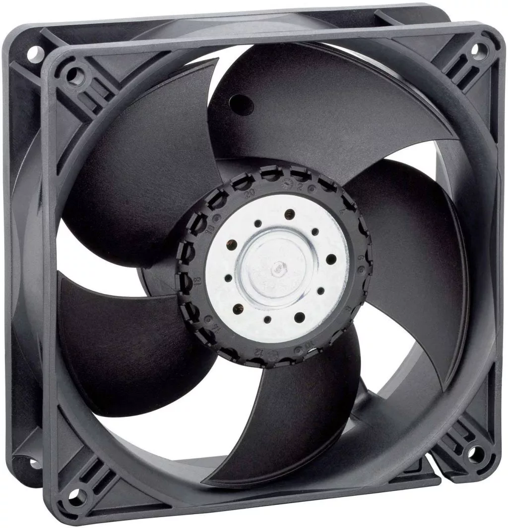 Műszaki adatok: Anyag: Műanyag · Csapágytípus: Golyóscsapágy · Fordulatszám: 3650 fordulat/perc · Gyártói szín: Fekete · Hőmérséklet (max.): 70 °C · Hőmérséklet (min.): -20 °C · Légáramoltatás: 205 m³/óra · Méret, hossz: 119 mm · Méret, magasság: 38 mm · Méret, szélesség: 119 mm · Névleges feszültség: 24 V/DC · Teljesítmény: 5.4 W · Zajkibocsátás (max.): 46 dB · Áramfelvét (max.): 225 mA