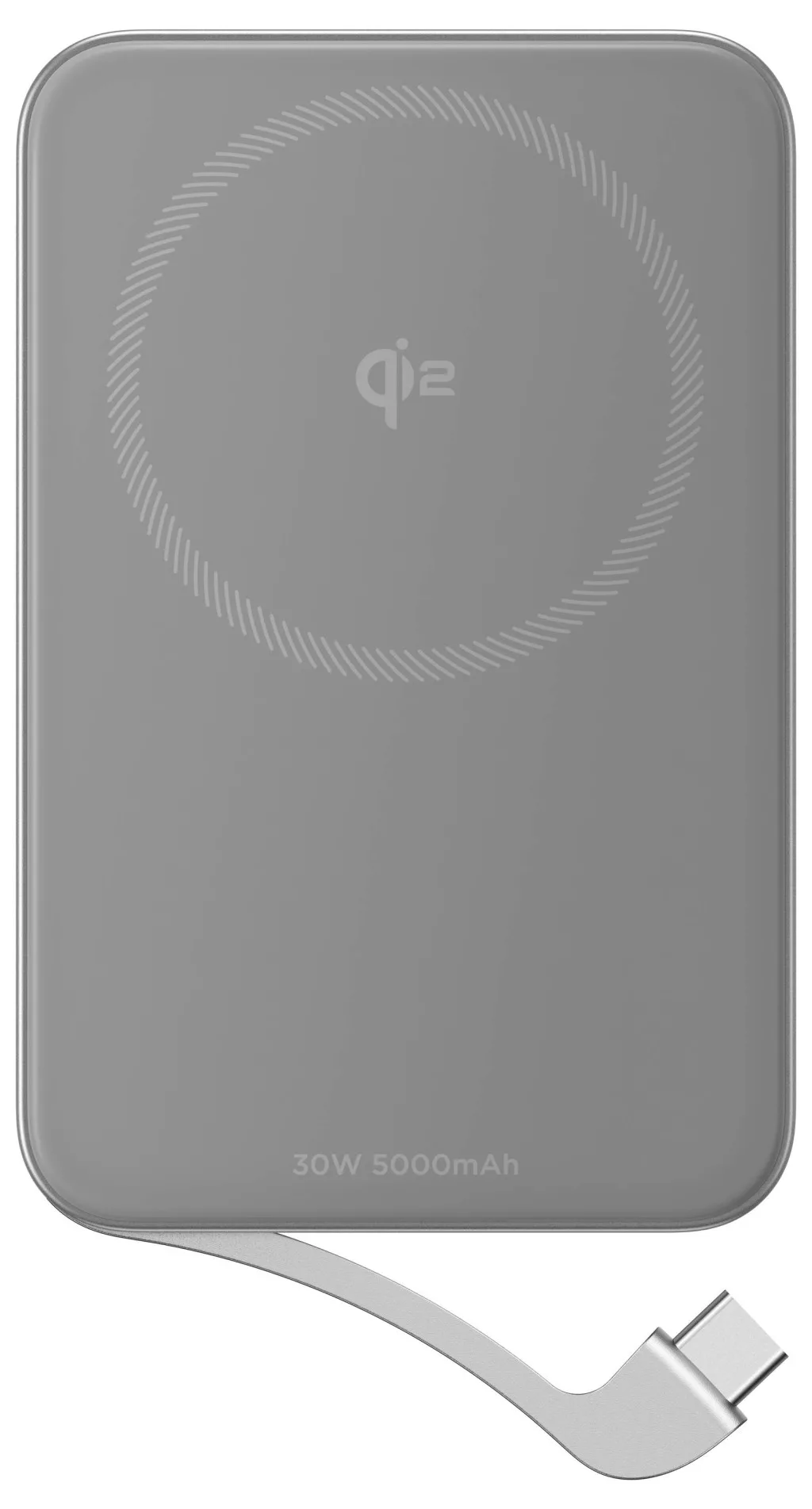 Technical specifications: Csatlakozó (számítástechnika/multimédia): USB-C®,#####Wireless Charging · Elem-/akkutechnológia: Lítiumion · Kapacitás (mAh, Ah): 5000 mAh · Méret, hossz: 108 mm · Méret, magasság: 14 mm · Méret, szélesség: 70 mm · Qi tanusítvány ID: 22579 · Szín: Ezüst · Súly: 180 g · Töltési csatornák/rekeszek: 3 · Töltési technológia: #####Magsafe,Qi Wireless Charging · Töltőáram (max.): 3000 mA · Vezeték nélküli töltő funkció: Igen