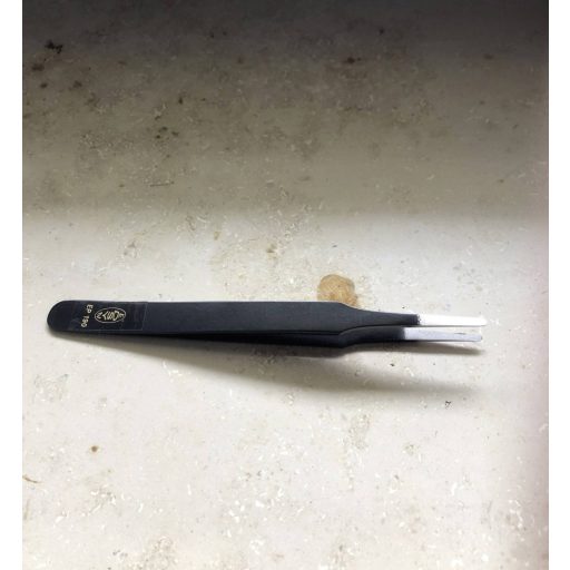 SMD speciális csipesz, alkalmas fóliakomponensek, fóliaadapterek és lapos, lapos SMD-k tárolására, ESD-kompatibilis, antimágneses, rozsdamentes, kb. 120 mm hosszú, lapos, lekerekített, széles hegyek, allergiamentes bevonat