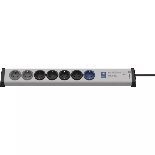 Műszaki adatok: Alkalmazás helye: Beltér · Anyag: Műanyag · Bekapcsolási küszöb: 7-100 W · Csatlakozási teljesítmény: 3600 W · Dugaljak száma: 7 · Gyártói szín: Szürke, Fekete · Hálózati csatlakozó típus: Védőérintkezős · Hálózati elosztó jellemzők: Master-Slave funkció, Túlfeszültség elleni védelem · Kábel típus DIN/VDE szerint: H05VV-F 3G 1,5 mm² · Kábelhossz: 1.50 m · Levezető áram: 6.5 kA · Méret, hossz: 590 mm · Méret, magasság: 47 mm · Méret, szélesség: 74 mm · Működés jelző: Optikai, Akusztikus · További műszaki adatok: Miniatűr biztosíték: T6.3AH / 250 V