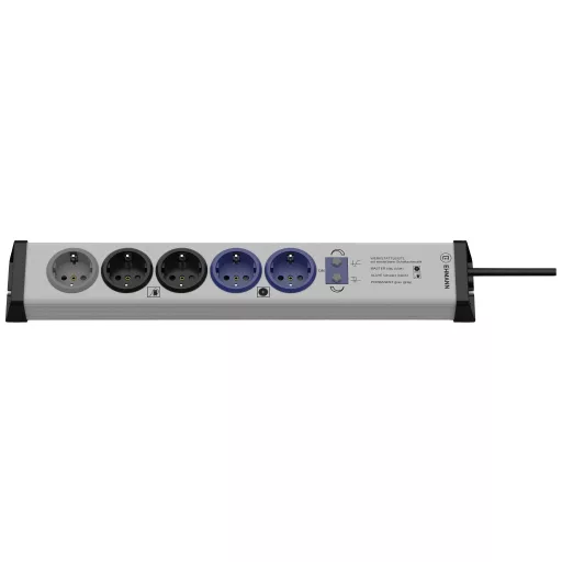 Műszaki adatok: Alkalmazás helye: Beltér · Anyag: Műanyag · Bekapcsolási küszöb: 40 W · Csatlakozási teljesítmény: 3600 W · Dugaljak száma: 5 · Gyártói szín: Ezüst, Fekete · Hálózati csatlakozó típus: Védőérintkezős · Kábel típus DIN/VDE szerint: H05VV-F 3G 1,5 mm² · Kábelhossz: 1.5 m · Méret, hossz: 462 mm · Méret, magasság: 47 mm · Méret, szélesség: 74 mm · Szerelési mód: Fixre csavarható · Védelmi típus: IP20 · Üzemi feszültség: 230 V
