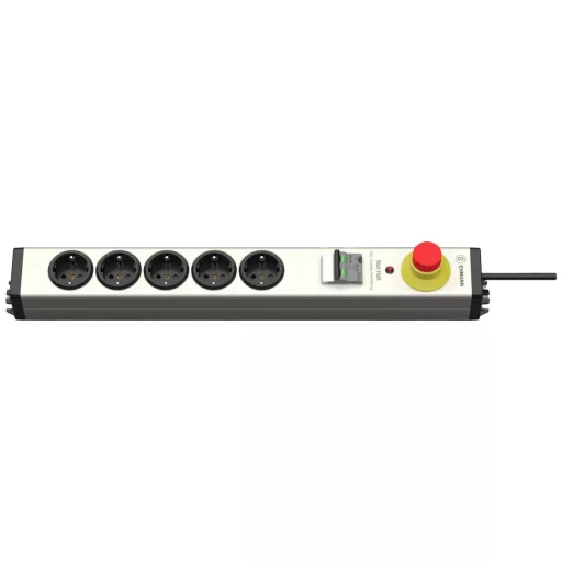 Műszaki adatok: Alkalmazás helye: Beltér · Anyag: Alumínium · C19 16A készülék csatlakozók: 5 · Csatlakozási teljesítmény: 3600 W · Dugaljak száma: 5 · Gyártói szín: Ezüst, Fekete · Hálózati csatlakozó típus: Védőérintkezős · Hálózati elosztó jellemzők: FI védővel, vészkikapcsolóval · Kábel típus DIN/VDE szerint: H05VV-F 3G 1,5 mm² · Kábelhossz: 4.2 m · Méret, hossz: 547 mm · Méret, magasság: 100 mm · Méret, szélesség: 65 mm · Szerelési mód: Fixre csavarható · Védelmi típus: IP20 · Üzemi feszültség: 230 V