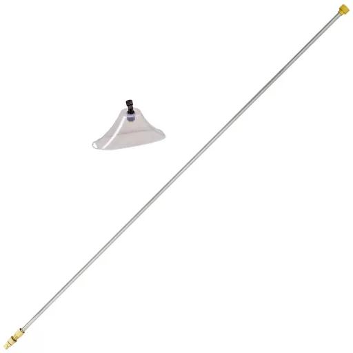 A kétrészes tartozékkészlet a GE-WS 18/35 Li, GE-WS 18/75 Li és GE-WS 18/150 Li akkus nyomópermetezőkkel használható. A robusztus, rozsdamentes acél szórócső teleszkópos, hossza minimum 1 métertől maximum 2 méterig állítható. Az átlátszó szórócsengő segítségével a permetet adott területekre lehet felvinni, és mindig optimális rálátás nyílik a munkaterületre. A permetező harang belső méretei a következők: 210 x 75 x 95 mm.