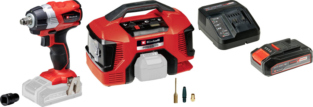 Einhell akkus ütvecsavarozó kulcs és kompresszor készlet