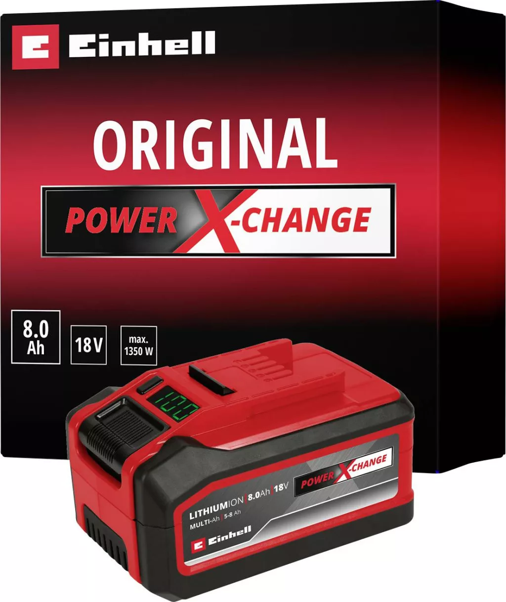 A 18V 5-8 Ah Multi-Ah PXC PLUS az Einhell többfunkciós Power X-Change akkumulátorrendszerének része, amely korlátlanul kombinálható egymással. Az univerzálisan használható Power X-Change akkumulátorok a kertben és a műhelyben a teljes termékcsalád összes akkus szerszámát energiával és kitartással látják el. Az előnyök az ügyfelek számára nyilvánvalóak: Egy akkumulátorral és egy töltővel minden készülékhez nem csak jelentős költségeket takarít meg a vásárláskor, az univerzális alkalmazás védi a környezetet, ugyanakkor rugalmasságot biztosít a házban és a kertben. Nincs rendetlenség és káosz sem, ha minden egyes eszközhöz különböző akkumulátorok és töltők tartoznak. A MULTI-Ah technológiának köszönhetően 8Ah-s akkumulátorként is üzemeltethető a maximális üzemidő érdekében, és 5Ah-s akkumulátorként a 3x hosszabb teljes élettartam érdekében. A lítium-ion cellák legújabb generációja 100%-kal nagyobb teljesítményt biztosít a maximális teljesítmény érdekében minden alkalmazásban. Ezenkívül a PLUS technológia extra teljesítményt jelent a nagy teljesítményű munkához. Ezenkívül a kiváló minőségű akkumulátor ellenáll a memóriaeffektusnak és az akkumulátorokra jellemző önkisülésnek, az állandó, nagy teljesítmény érdekében. A 18V 5-8 Ah Multi-Ah Power X-Change PLUS egy csúcskategóriás akkumulátor a Power X-Change családból, és TWIN-PACK használatra is alkalmas 36 V-os alkalmazásokban. A folyamatvezérelt, aktív akkumulátor menedzsment rendszer ABS folyamatosan figyeli az akkumulátor paramétereit a használt mikroprocesszor segítségével. Ez maximális biztonságot, optimális eszközteljesítményt, maximális üzemidőt és maximális élettartamot biztosít. A pontos, aktuális töltöttségi állapot %-ban a digitális kijelzőn ellenőrizhető. Felépítésének köszönhetően a ház ellenáll a pornak, a korróziónak és a mechanikai hatásoknak. A gumibevonat magas ütésvédelmet és jó tapadást biztosít az akkumulátornak. A süllyesztett markolat segítségével minden eszközről könnyen eltávolítható.