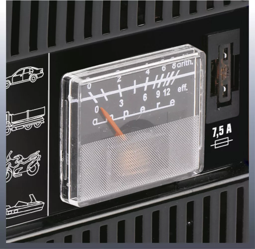 Az Einhell CC-BC 5 akkumulátortöltő egy praktikus 12 V-os töltőkészülék egy robusztus acéllemez házban az üres autó- és motorkerékpár-akkumulátorok rugalmas töltéséhez. A töltési folyamat felügyelete céljából a készülék egy ampermérővel rendelkezik, amely az akkumulátor pillanatnyi töltési állapotát jelzi ki. A lehető legnagyobb biztonság érdekében az eszköz védő szigetelő szerkezettel, valamint túlterheléssel, fordított polaritással és rövidzárlat elleni védelemmel rendelkezik. Az erőteljes, teljesen szigetelt pólusbilincsekkel rendelkező töltőkábel biztosítja az optimális kapcsolatot az akkumulátor pólusaival. A robusztus fogantyúval a praktikus eszköz gyorsan és rugalmasan bárhonnan elvihető bármely helyre.