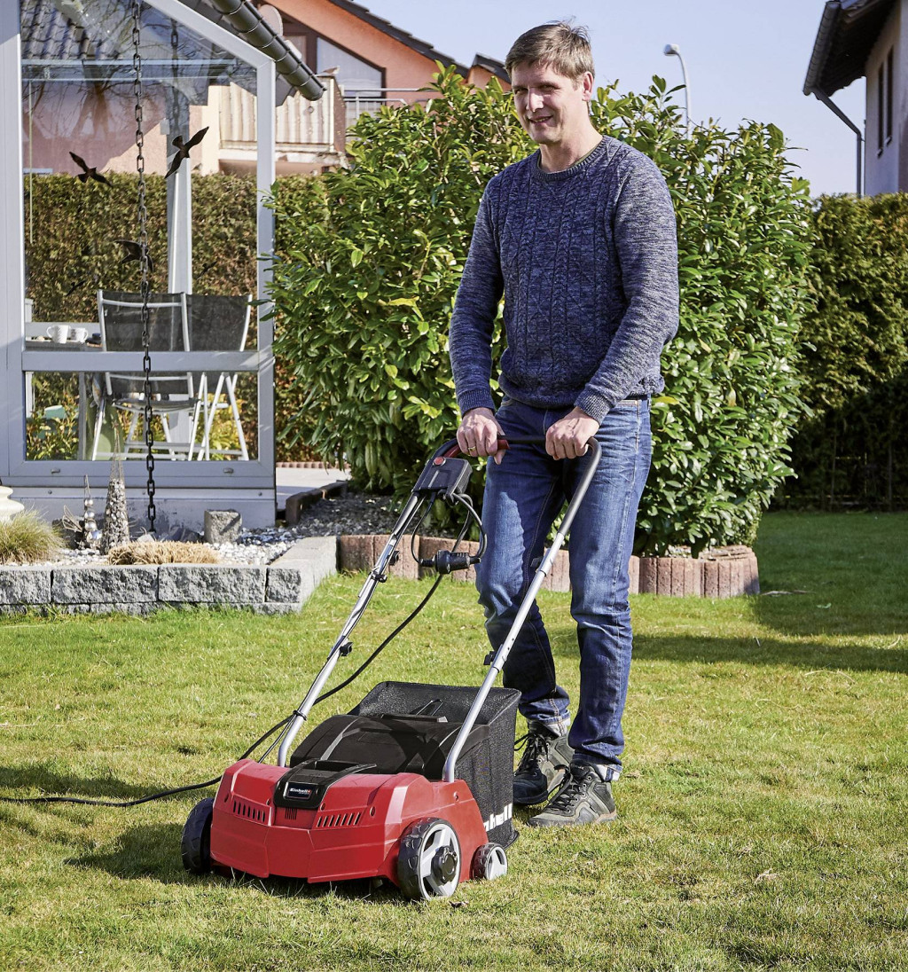 A GC-SA 1231/1 elektromos nyíró-levegőztető egy erős és megbízható kombinált eszköz, amely jó munkát végez a kis és közepes méretű földterületek levegőztetésében és szellőztetésében az egészséges gyepápolás érdekében. A 8 kiváló minőségű dupla késsel a golyóscsapágyazott késhenger alaposan eltávolítja a gyomokat és a mohát, beleértve a gyökereket is. A golyóscsapágyakra is szerelt levegőztető görgő professzionális talajszellőztetést tesz lehetővé 45 karmos karmával. A nagy teljesítményű, 1200 wattos sorozatmotor nagy nyomatékot biztosít a folyamatos munkavégzés és az állandóan jó eredmények érdekében. A három fokozatban állítható munkamélységnek köszönhetően a szellőztetőgép könnyen a talaj és a növényzet igényeihez igazítható. Egy további parkolópozíció megbízhatóan védi a szerszámokat és a talajt egyszerre. A nagy kerekek megkönnyítik a munkát egyenetlen terepen és védik a gyepet. A gyűjtőzsák 28 literes. A készülék robusztus háza kiváló minőségű, ütésálló műanyagból készült. Az összehajtható kormánynak köszönhetően a vágógép helytakarékosan tárolható. A kombinált készüléket kb. 300 m²-es pázsitra ajánljuk.