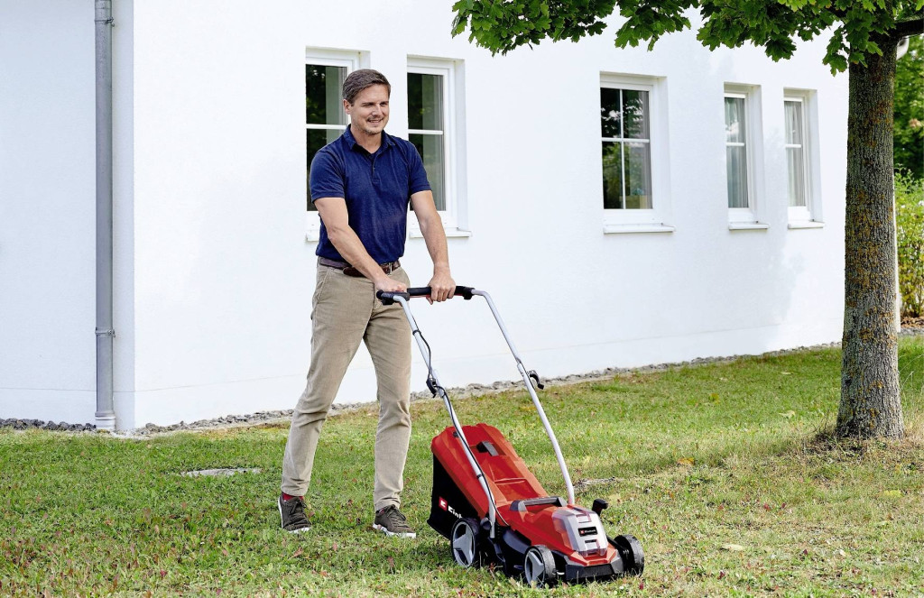 A GE-CM 18/33 Li (1x4,0 Ah) akkumulátoros fűnyíró a rugalmas és nagy teljesítményű Power X-Change család tagja, és legfeljebb 200 m²-es területre ajánlott. Az akkumulátoros fűnyíró 18 voltos 4,0 Ah akkumulátorral működik a felhasználóbarát PXC rendszersorozatból. Az akkumulátort és a töltőt a csomag tartalmazza. Az akkumulátorok 3 LED-del rendelkeznek szintjelzőként, és a rendszersorozat összes többi eszközével kombinálhatók. A nagy teljesítményű akkumulátoros fűnyírót egy Einhell kefe nélküli motor hajtja, egy kefe nélküli villanymotor, amelynek működési ideje és élettartama hosszabb, mint a hagyományos szénkefe motoroké. A nagy, gyepbarát kerekekkel rendelkező Highwheeler 5 fokozatú központi vágási magasságállítással, valamint 2 irányban állítható magasságú és összecsukható kormánnyal rendelkezik a kényelmes kezelés érdekében, valamint nagyvonalúan méretezett fűgyűjtő dobozzal, szintjelzővel. A fűnyíró kiváló minőségű, ütésálló műanyag házzal rendelkezik, és beépített hordozó fogantyúval is rendelkezik, amely megkönnyíti a szállítást.