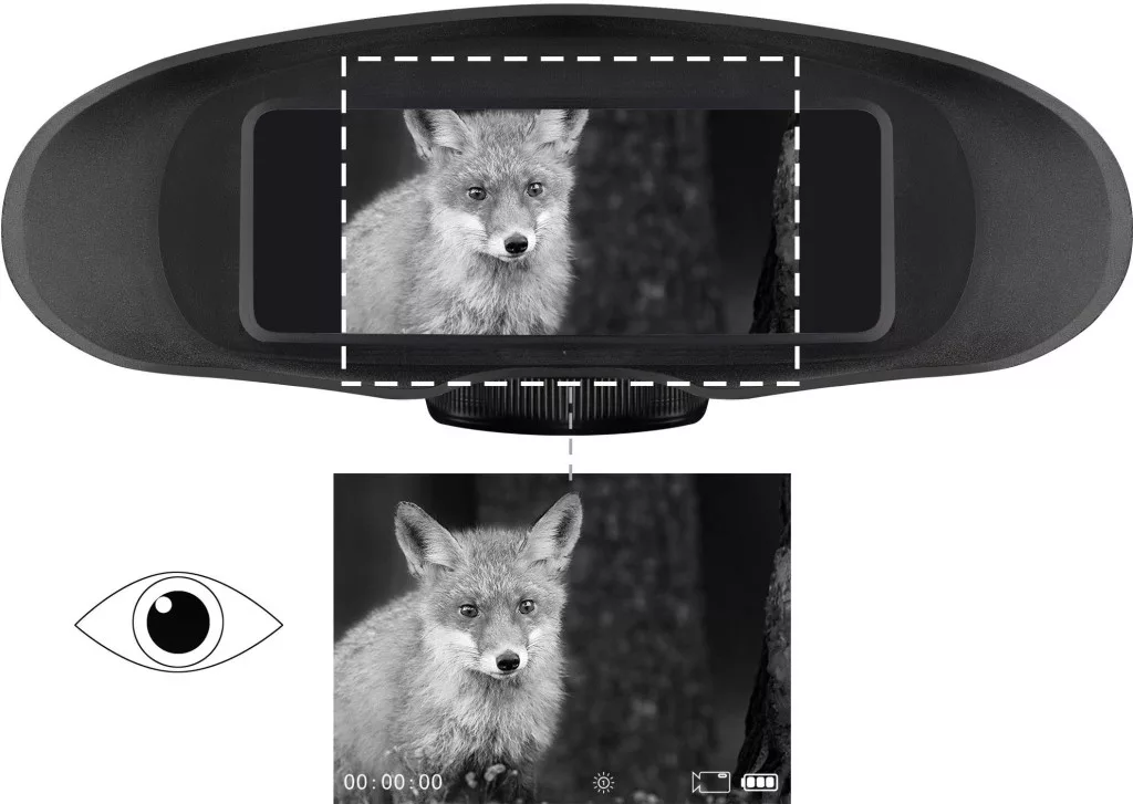 Ez a digitállis éjjellátó készülék a nagy kijelzőjével és két szemmel való megfigyeléssel különösen nagy megfigyelési komfortot nyújt. A digitális kivitelének köszönhetően érzéketlen a túlzott sugárzásra A 850 nm-es beépített infravörös világítás problémamentes megfigyelést tesz lehetővé teljes sötétségben. A nagy látószöggel nagyobb távolságból is kényelmesen megfigyelhetjük a kívánt tárgyat. A szabványos AA elemek körülbelül 5 órás megfigyelési időt tesznek lehetővé. A 2-szeres digitális zoommal az objektumokat közelebbről megtekintheti anélkül, hogy közelede hozzá. Az észlelési hatótáv éjszaka kb. 130 m - távolabbi megfigyelés jó maradék fény viszonyok mellett lehetséges Ezzel a készülékkel kényelmesen figyelhet mindkét szemmel.