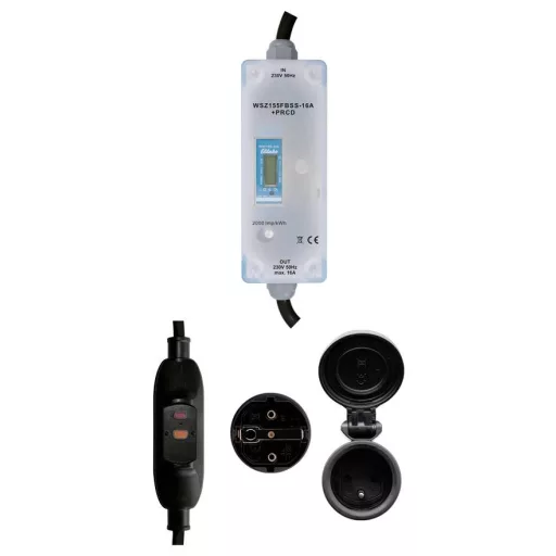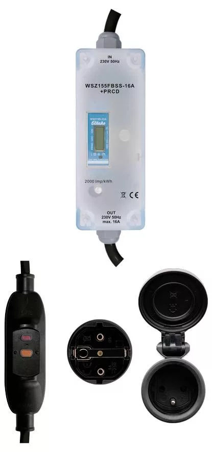 Mobil AC mérő E típusú csatlakozóval Franciaországba és Belgiumba. Kiegészítő személyi védelem közbenső kapcsolóval PRCD 30 mA. Bel- és kültéri felhasználásra egyaránt alkalmas Maximális áramerősség 16 A. Védettség IP54. Készenléti veszteség mindössze 0,4 watt. Ház mérete 155 x 60 x 82 mm, csatlakozókábel 1,5 m (dugóval és csatlakozóval együtt). B pontossági osztály (1%). Ez a mobil AC mérő aktív energiát mér a bemenet és a kimenet között folyó áram alapján. A legfeljebb 0,4 watt aktív teljesítmény önfogyasztása nem mérhető és nem jelenik meg. A kijelző 10 másodpercenként ciklikusan vált a kWh-ban kifejezett felhalmozott aktív energia és a kW-ban kifejezett áramfelvétel között. Az indítóáram 20 mA. A kijelző csak tápegységgel olvasható. A fogyasztást azonban a rendszer nem felejtő módon tárolja, és áramkimaradás után azonnal újra megjelenik. A digitális kijelző 7 számjegyű. 99999,99 kWh-ig két tizedesjegy jelenik meg, 100000,0 kWh-tól csak egy. A mobil AC mérő egy konzollal van felszerelve az egyszerű telepítés érdekében. Ez könnyen eltávolítható, ha nem szükséges. Az energiafogyasztást egy kWh-nként 2000-szer felvillanó LED jelzi. A PRCD személyi védelmi kapcsoló érzékeli a hibaáramokat, amelyek például egy hibás elektromos készülék megérintésekor lépnek fel, és olyan gyorsan megszakítja az áramot, hogy az életveszélyes balesetek elkerülhetők legyenek. Feszültségcsökkenési kioldóval is rendelkezik, amely hálózati feszültség kimaradása esetén kikapcsol. Funkciókijelzővel és tesztáramkörrel.