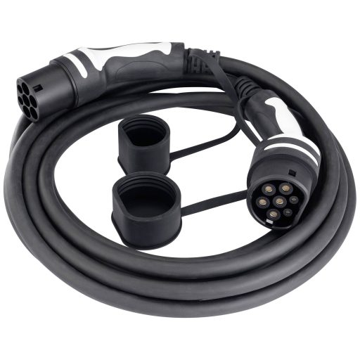 Sygonix E-mobility töltőkábel 5 méter hosszúságú elektromos autók töltéséhez 2 db Type 2 csatlakozóval, 3-as módban akár 22 kW töltési teljesítménnyel.