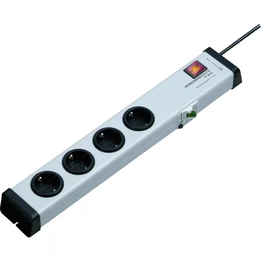Műszaki adatok: Alkalmazási terület: Beltér · Anyag: Műanyag · Bemérési differenciál áram: 0.01 A · Dugaljak száma: 4 · Gyermekvédelem: Igen · Hálózati elosztó jellemzők: Személyvédelem,Kapcsolóval · Kivitel: Szerelési lyukak · Kábel típus DIN/VDE szerint: H05VV-F 3G 1,5 mm² · Kábelhossz: 1.50 m · Méret, hossz: 462 mm · Méret, magasság: 54 mm · Méret, szélesség: 75 mm · Szín: Szürke · Típus: Elosztók kapcsolóval · Üzemi feszültség: 230 V/AC