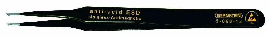 Jellemzők: SMD csipesz, 120 mm, hegye meghajlítva, 1,6 mm széles, ESD bevonattal rozsdamentes, antimágneses és saválló.