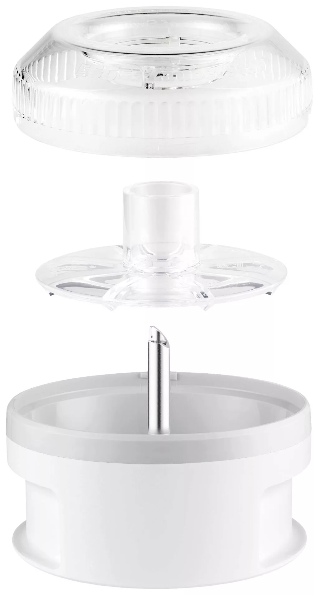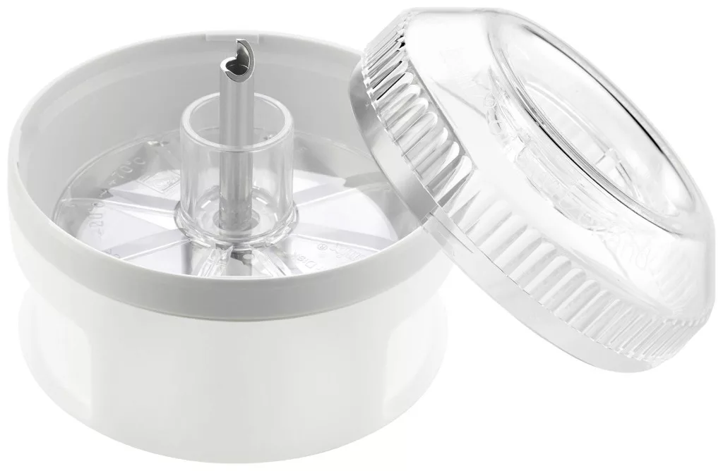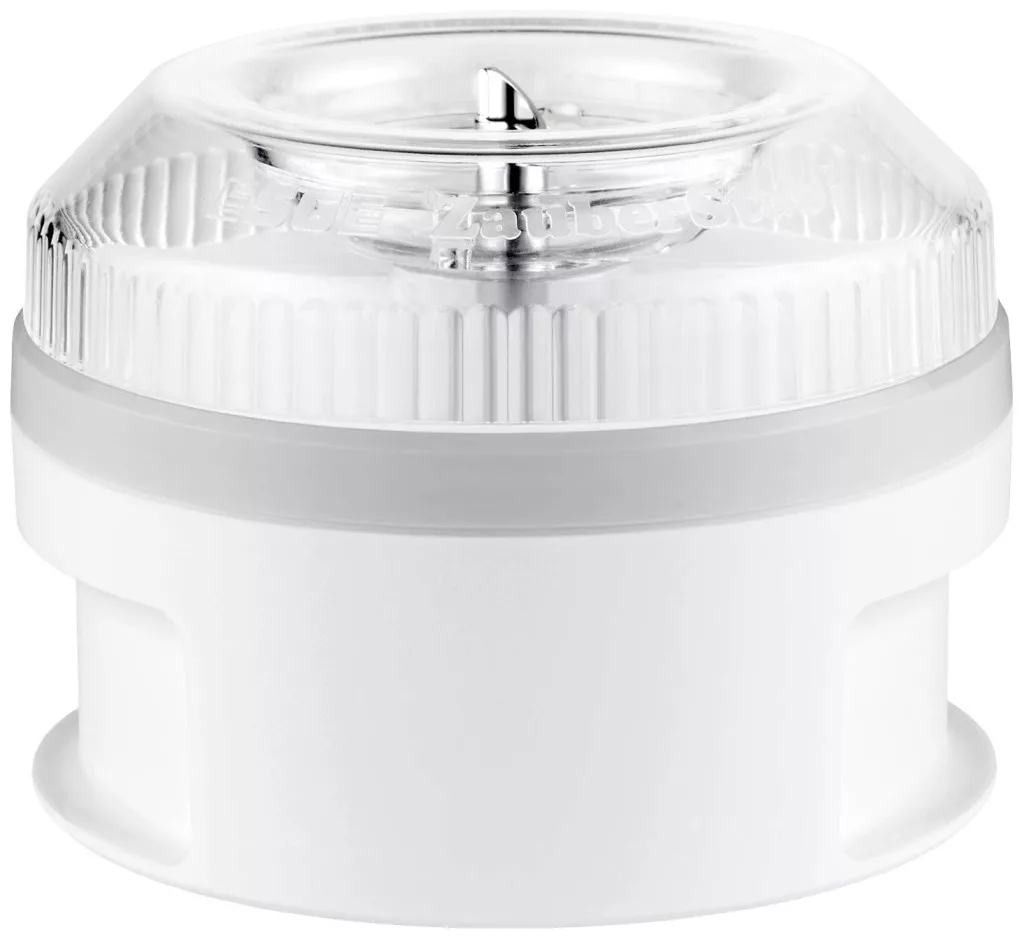 Aprított vagy darált rögzítés! Az ESGE-Zauberstab® processzorral a salátákhoz, mártogatósokhoz stb. való száraz hozzávalók apríthatók vagy finomra őrölhetők. A kétpengéjű rozsdamentes acél kés nemcsak a fűszernövényeket, hanem a dióféléket, a kemény sajtot vagy a gabonaszemeket is gombnyomásra feldarabolja. Az átlátszó fedélnek köszönhetően mindig látható az őrlés mértéke. Mivel a portárcsa a berendezés része, a legkisebb mennyiség is könnyen feldolgozható. A processzor a Gastro és a Maître kivételével az összes ESGE-Zauberstab® modellel kompatibilis.
