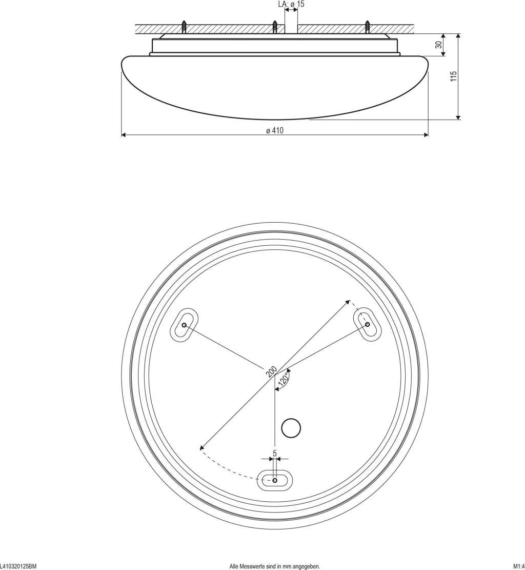 Műszaki adatok: 2021-es energiahatékonysági osztályok: n.rel. · Anyag: Acél · Fényforrással: Igen · Fényszín: 6000 K · Fényszín (fényforrás): Melegfehértől nappalifény fehérig · Fényáram összesen: 3000 lm · Gyártói szín: Fehér · Lámpa jellemzők: Falra szerelhető, Mozgásérzékelővel · Méret, magasság: 115 mm · Teljesítmény: 32 W · Védelmi osztály: I · Védelmi típus: IP44, IK03 · Átmérő: 410 mm · Üzemi feszültség: 220 V, 240 V