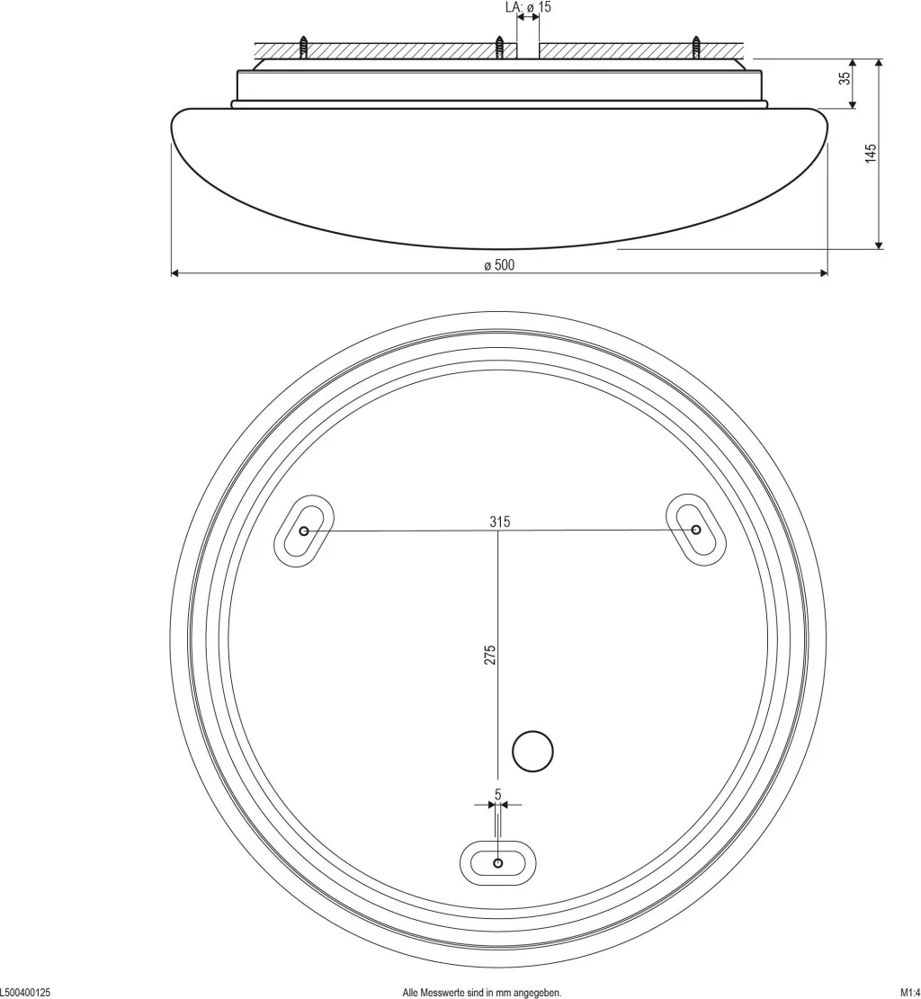 Műszaki adatok: 2021-es energiahatékonysági osztályok: n.rel. · Anyag: Acél · Fényforrással: Igen · Fényszín: 6000 K · Fényszín (fényforrás): Melegfehértől nappalifény fehérig · Fényáram összesen: 4250 lm · Gyártói szín: Fehér · Lámpa jellemzők: Falra szerelhető · Méret, magasság: 145 mm · Teljesítmény: 40 W · Védelmi osztály: I · Védelmi típus: IP44, IK03 · Átmérő: 500 mm · Üzemi feszültség: 220 V, 240 V