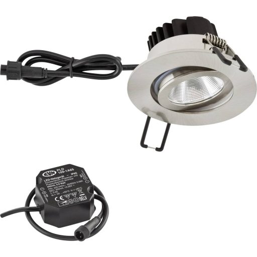 Műszaki adatok: 2021-es energiahatékonysági osztályok: n.rel. · Anyag: Alumínium · Beépítési mélység: 45 mm · Foglalat: Fixen beépített LED-es · Fényforrás típus: LED · Fényforrással: Igen · Fényszín: 3000 K · Fényszín (fényforrás): Melegfehér · Gyártói szín: Nemesacél · Helyiség: Nappali/étkező, Hálószoba, Konyha · Külső átmérő: 83 mm · Lámpa jellemzők: Dönthető · Méret, magasság: 48.5 mm · Stílus: Modern/dizájn · Sugárzási szög: 20 °, 40 ° · Teljesítmény: 8.4 W · Védelmi típus: IP65 · Védőüveg: átlátszó · Üzemi feszültség: 240 V/AC