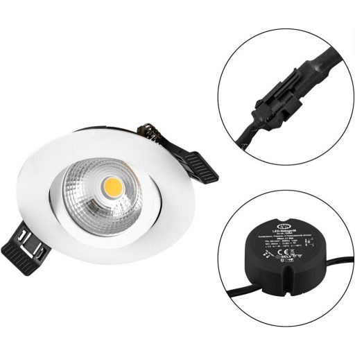 Műszaki adatok: 2021-es energiahatékonysági osztályok: n.rel. · Anyag: Alumínium · Beépítési mélység: 26 mm · Beépítési átmérő: 68 mm · Fényesség (max): 3000 K · Fényforrás típus: LED · Fényforrással: Igen · Fényszín: 3000 K · Fényszín (fényforrás): Fehér · Fényszín (min.): 3000 K · Fényáram/fényforrás (lumen): 683 lm · Gyártói szín: Fehér · Helyiség: Nappali/étkező, Hálószoba, Konyha · Méret, magasság: 28.00 mm · Stílus: Modern/dizájn · Teljesítmény: 6 W · Védelmi osztály: II · Védelmi típus: IP54 · Átmérő: 83 mm · Üzemi feszültség: 230 V