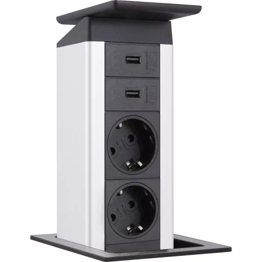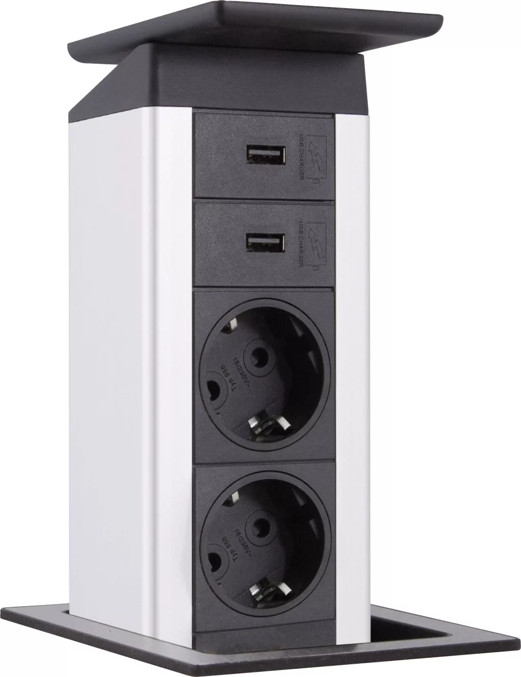 Műszaki adatok: Alkalmazás helye: Beltér · Anyag: Műanyag · Csatlakozási teljesítmény: 3600 W · Dugaljak száma: 2 · Hálózati csatlakozó típus: Védőérintkezős · Hálózati elosztó jellemzők: Süllyeszthető · Kábelhossz: 3.00 m · Levezető áram: 16 A · Szerelési mód: Beépíthető · További műszaki adatok: Az USB-töltő töltőáram: 1000 mA · Az USB töltő készenléti áramellátása: 0,5 W · Jóváhagyások: TÜV típusú tanúsítvány. · Védelmi típus: IP40 · Üzemi feszültség: 230 V
