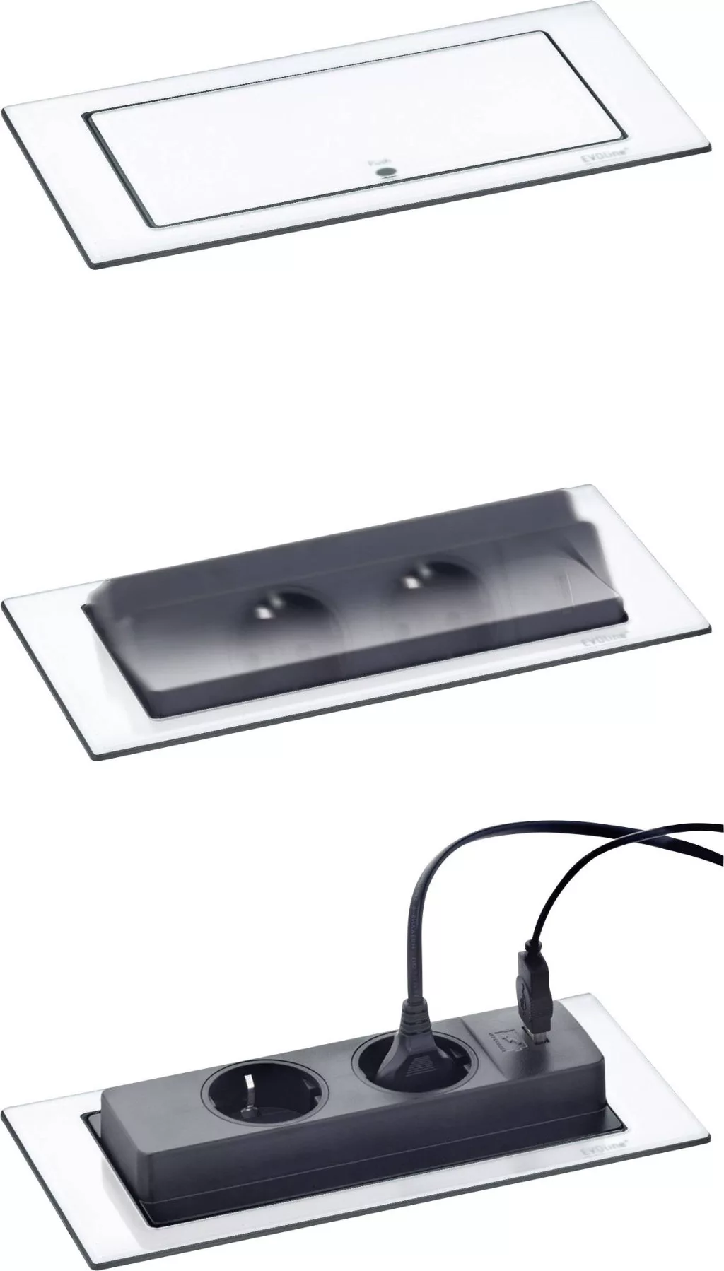 Mindig elérhető, de soha nem az útjában. Csukva az EVOline® BackFlip csak egy vékony lemez a munkafelületen. Ujjával megfogva elfordul 180 fokkal, és megmutatja annak hasznos oldalát: Az USB töltők és aljzatok olyan magasan vannak a lemez felett, hogy védettek az oldalról beáramló víztől. A beépítési mélység mindössze 53 milliméter, így fiókok vagy eszközök fölé is beszerelhető.