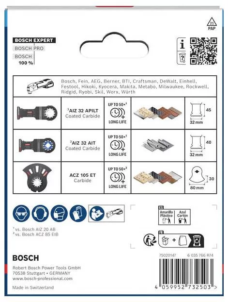 Rozsdamentes acél, szegezett fa és gipszkarton anyagok tartós vágása! Az EXPERT fűrészlapkészlet kiváló minőségű EXPERT fűrészlapokat kínál a különböző szakmák szakemberei számára a különböző anyagok hatékony és erőfeszítés nélküli vágásához. Az EXPERT fűrészlapkészlet kivételesen tartós fűrészlapokat tartalmaz multifunkciós szerszámokhoz, olyan szakemberek számára, akiknek rozsdamentes acélcsöveket és profilokat, szegezett fát és gipszkarton anyagokat kell vágniuk és bemerítő vágásra alkalmasak.