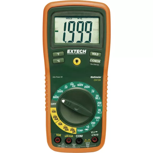 Az EX410A egy robusztus és megbízható multiméter. Olcsó mérőeszköz kapcsolható kijelzővilágítással és kézi tartományválasztással.