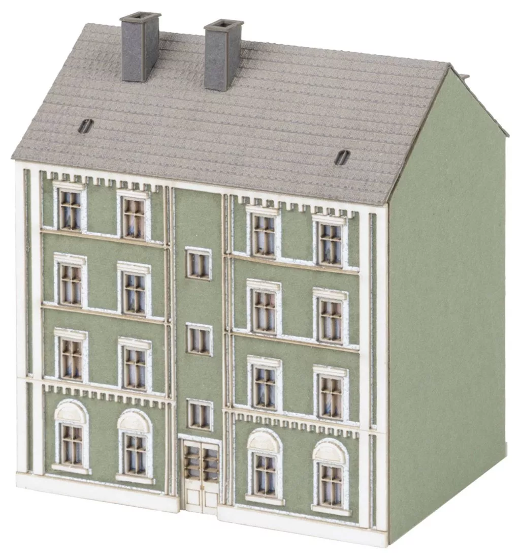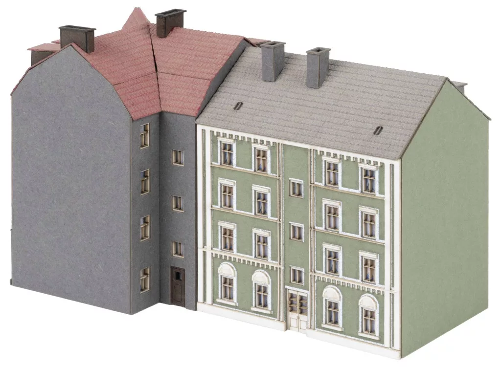 A városközpontban a házsorok közötti tágas sikátorokban lüktet az élet. Egy tipikus sorházsor modellje ideális az ilyen élénk jelenetek megteremtéséhez. Szeretetteljes részleteivel tökéletes hátteret biztosít a miniatűr lakók nyüzsgéséhez.