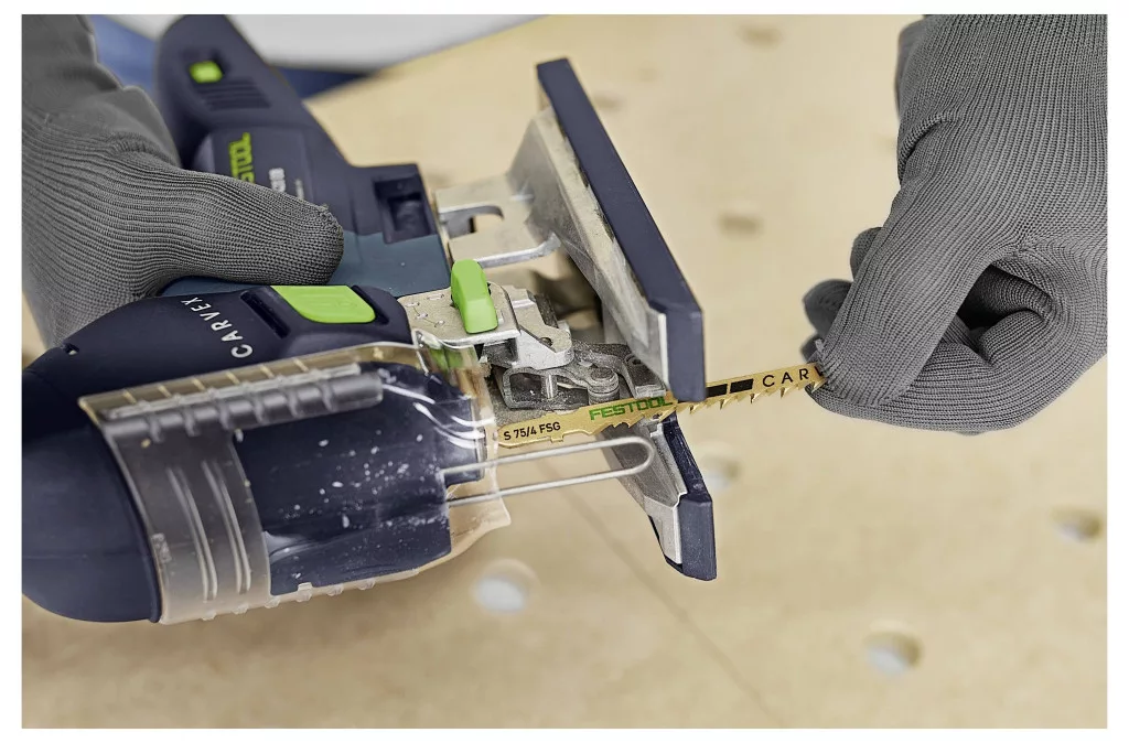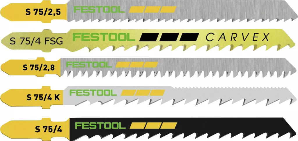 A Festool színkódolásával gyorsan megtalálható a megfelelő fűrészlap: a sárga szín a fa megmunkálását jelenti.
