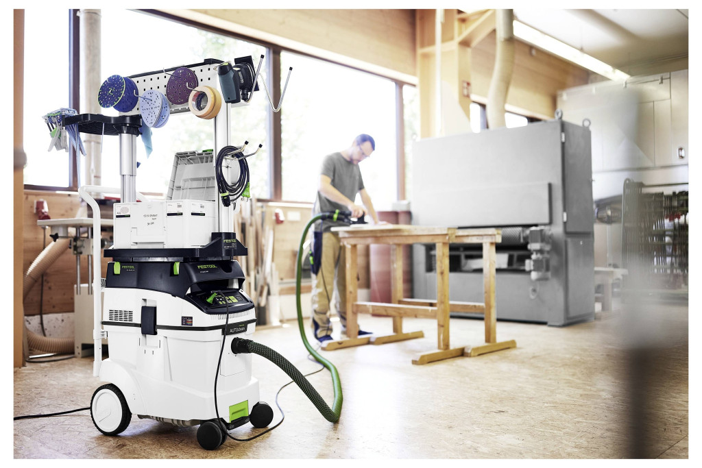 A CLEANTEC CTM 48 EI AC az elődjéhez képest hatékonyabb AUTOCLEAN főszűrő-tisztítással tűnik ki. Ezáltal biztosítható az állandóan magas szívóteljesítmény, a hosszabb munkaidőközök és a szűrő hosszabb élettartama kevesebb karbantartás mellett. Érintőképernyős vezérlőkkel a porszívó intuitív kezeléséhez. Fixen beépített Bluetooth® interfésszel a porszívó automatikus indításához Festool akkus géppel vagy opcionális távirányítóval. A porszívó a Festool alkalmazáshoz is csatlakoztatva van, ahol például beállíthatja a tisztítási intervallumokat. A sima, antisztatikus szívótömlő kényelmesen tárolható a beépített tömlőtárolóban.