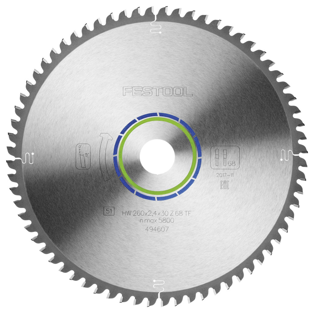Festool HW 260x2,4x30 TF68 494607 Körfűrészlap 260 x 30 x 1.80 mm Fogak száma (collonként): 68 1 db