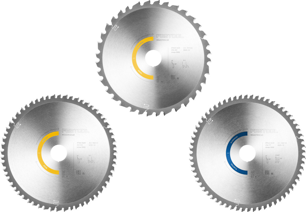 Bestehend aus Kreissägeblättern der Kategorien WOOD FINE CUT, WOOD UNIVERSAL, ALUMINIUM/PLASTICS