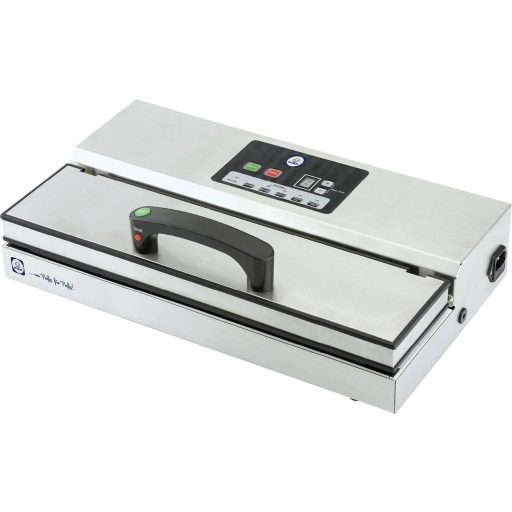 Kiváló minőségű, teljesen automatikus vákuumtömítő profibrand NovaVac PRO 410 rozsdamentes acélból - kifejezetten a kereskedelmi felhasználók igényeinek megfelelően. A vákuumcsomagolás meghosszabbítja az élelmiszerek élettartamát azáltal, hogy eltávolítja a levegő nagy részét a tartályokból vagy zacskókból, és lezárja azokat. A vákuumcsomagolás segít megőrizni az ízt és a minőséget, és gátolja a különböző baktériumok szaporodását. A rendkívül funkcionális rendszert kifejezetten arra tervezték, hogy ne törje össze a vákuummal lezárandó élelmiszert. Ez azt jelenti, hogy a nyomásérzékeny élelmiszerek finoman vákuummal is lezárhatók.