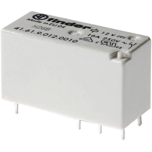 Műszaki adatok: Gyártói szám: 41.61.9.024.0000 · Hőmérséklet (max.): +70 °C · Hőmérséklet (min.): -40 °C · Kapcsolási feszültség (max.): 250 V/AC · Max. kapcsolási áram: 16 A · Névleges feszültség tekercs: 12 V/DC · Tartalom: 20 db · Termék típus: Nyák relé · További műszaki adatok: Relé védelmi mód: RT II · Vezérlés: monostabil, 1 tekercs · Érintkező típus: 1 váltó · Érintkezőanyag: AgNi