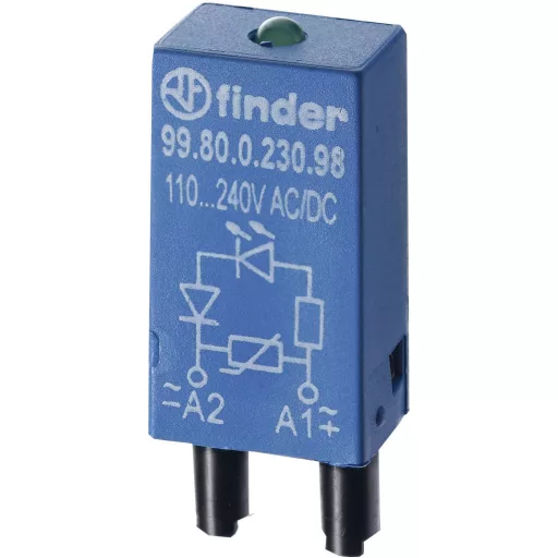 Kék plug-in modul zöld LED-del és szabadonfutó diódával (+ az A1-en).