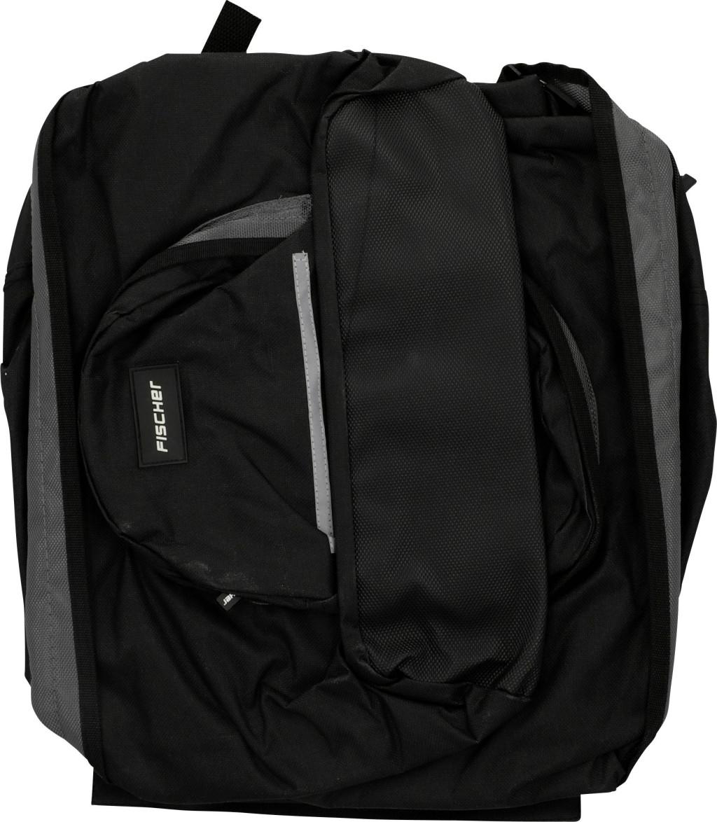 A FISCHER csomagtartó táska praktikus, vízálló esővédővel van felszerelve. Ez egy 3 rekeszes csomagolótáska felső zsebbel. A felső zseb hátizsákként is használható. A táska egy integrált pánttal biztonságosan rögzíthető a csomagtartóra. A hátizsák teljes hevederrendszerrel rendelkezik. A biztonságot sem hanyagolják el a fényvisszaverő csíkok. Űrtartalma kb 58 liter.
