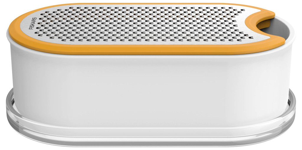 A reszelő alatti belső tartály összegyűjti a lereszelt hozzávalókat, és kevesebb szennyeződést biztosít. A reszelőket könnyű tárolni, mivel a fedél frissen tartja az edényben lévő összetevőket. Mosogatógépben mosható. Finnországban tervezték.
