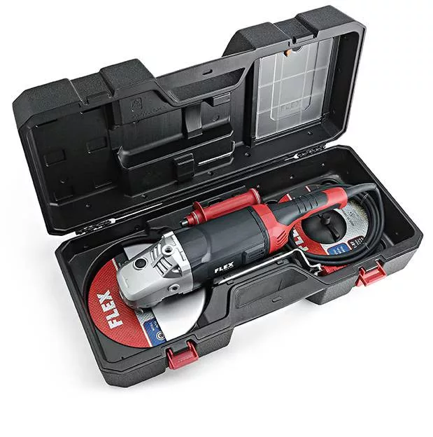 Ütésálló műanyag tok betéttel nagy sarokcsiszolókhoz (Ø 230-ig) és felújító gépekhez LD 18-7 125 R / 150 R, LD 24-6 180. Tartalmazza a fogantyút, a tárcsát Ø 230 mm -ig és az átlátszó fedéltartót DIN A5.