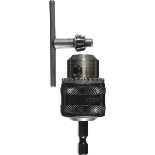 Műszaki adatok: Fúrótokmány szorítási tartomány: 0,5 - 6,5 mm · Géptartó: 1/4" (6,3 mm), külső négylap